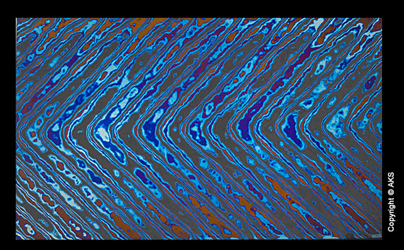 This material is a composite of epoxy and blue denim fabric. It is made like G10, but with blue denim instead of glass mat. The epoxy in the laminate is the same epoxy used in all our G10. The material is bonded together under high pressure and heat the same as G10. The finished material is strong and looks good. There is a light blue side and dark blue side.